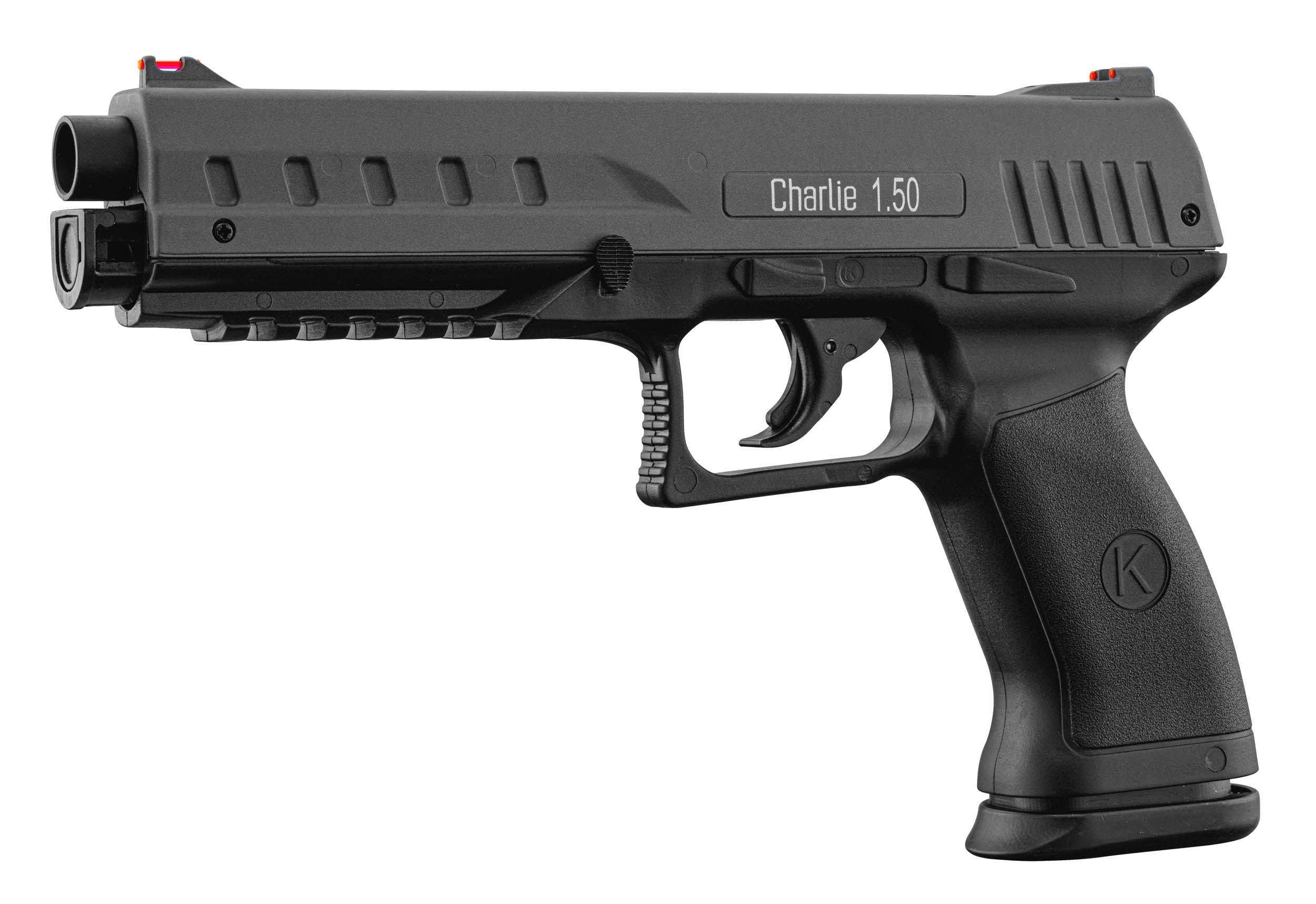 Le pistolet Charlie 1.50 est une arme de self défense de grande puissance (16 joules) à l'apparence imposante. Avec sa culasse et son canon métalliques, l'arme est lourde et bien en main comme un vrai pistolet.